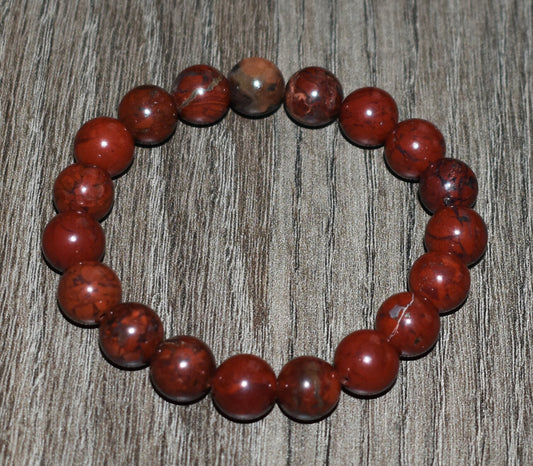 10mm Red Brecciated Jasper Bracelet